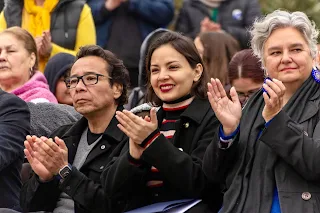 bordadoras y la comunidad, haciéndoles un reconocimiento en la localidad donde
