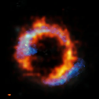 Millimetre/submillimetre Array (ALMA), que detecta gas frío, que se ve en azul,