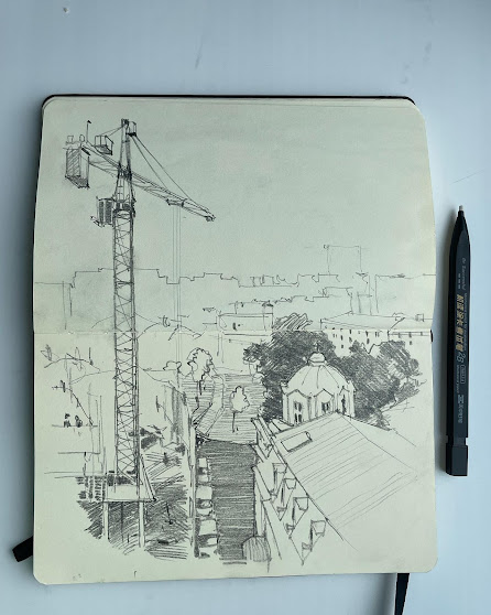 urbanos y paisajes. Camina con su cuaderno de bocetos por las antiguas calles